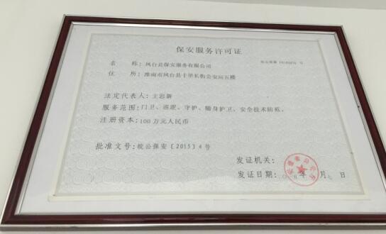 齊備的國家資質(zhì)認證保安服務許可證